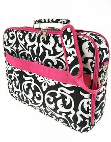 -. Title : World Traveler Damask P.R.Int 17-inch Laptop Bag, Black and White with Pink Trim
