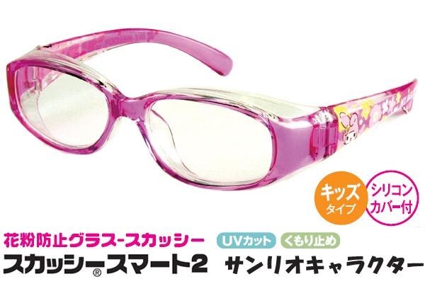 fk094igrjs伊達眼鏡風の花粉防止メガネ「スカッシー(R)スマート2」とサンリオキャラクター「マイメロディ」がコラボレーション!!テンプルにさりげないキャラクターデザインを転写しました。可愛い専用ソフトケース付です。テンプルを改良し、よりやわらかにしなやかなかけ心地に!!レンズはUVカット仕様です。