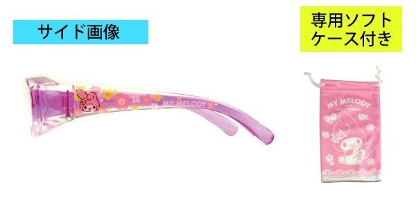 伊達眼鏡風の花粉防止メガネ「スカッシー(R)スマート2」とサンリオキャラクター「マイメロディ」がコラボレーション!!テンプルにさりげないキャラクターデザインを転写しました。可愛い専用ソフトケース付です。テンプルを改良し、よりやわらかにしなやかなかけ心地に!!レンズはUVカット仕様です。 |