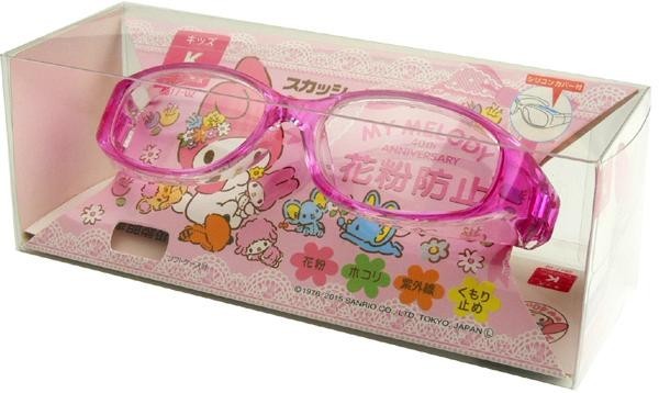 | 伊達眼鏡風の花粉防止メガネ「スカッシー(R)スマート2」とサンリオキャラクター「マイメロディ」がコラボレーション!!テンプルにさりげないキャラクターデザインを転写しました。可愛い専用ソフトケース付です。テンプルを改良し、よりやわらかにしなやかなかけ心地に!!レンズはUVカット仕様です。 |