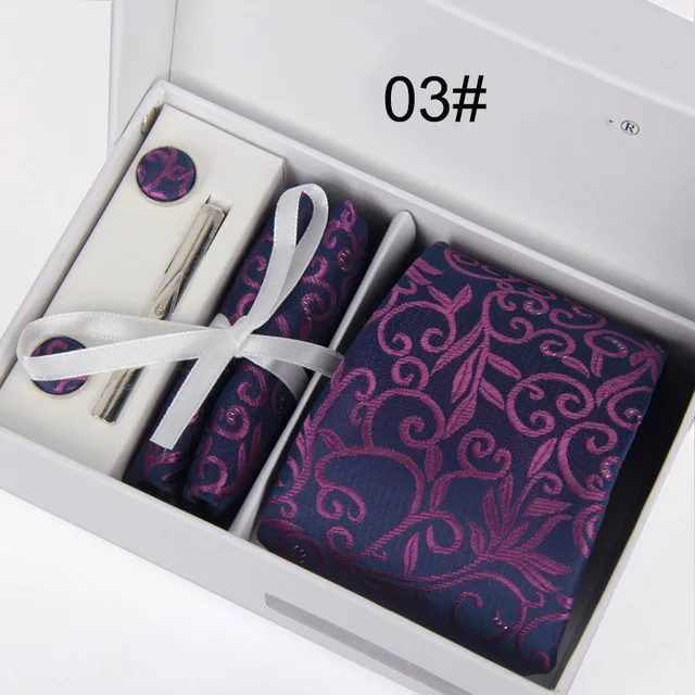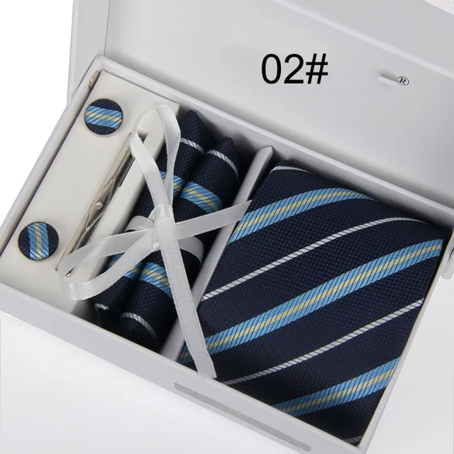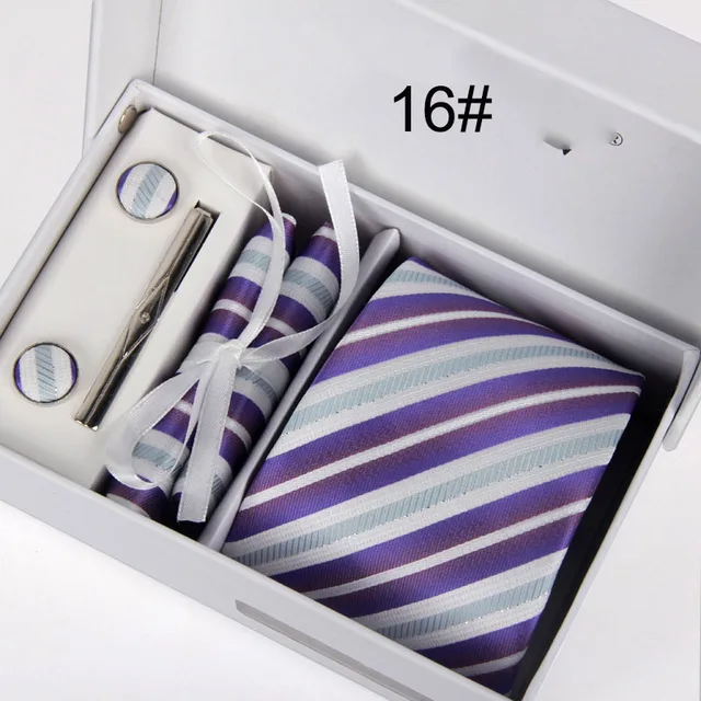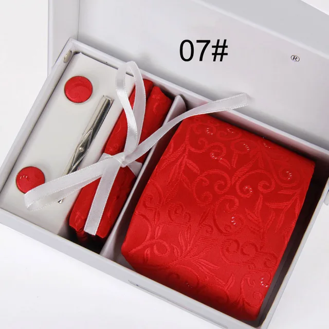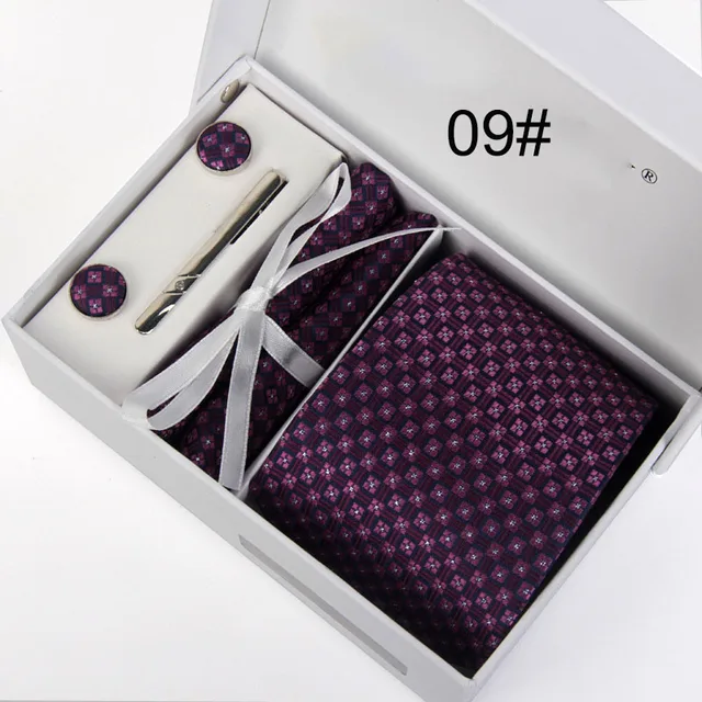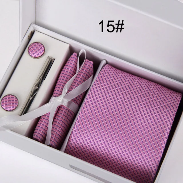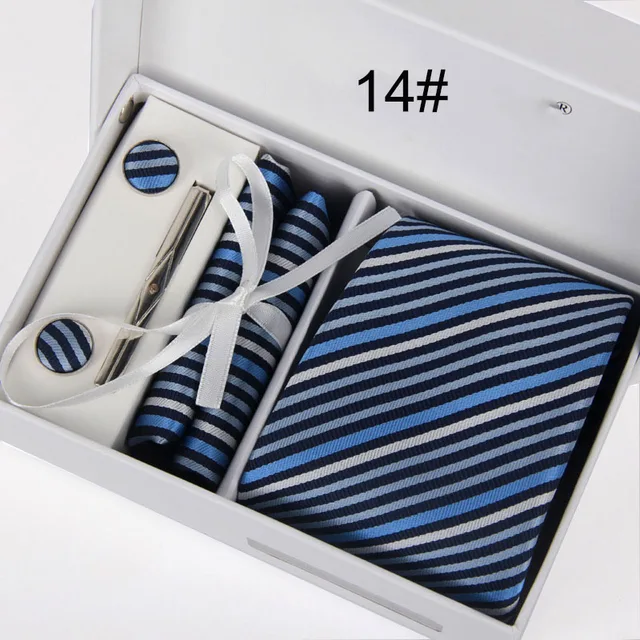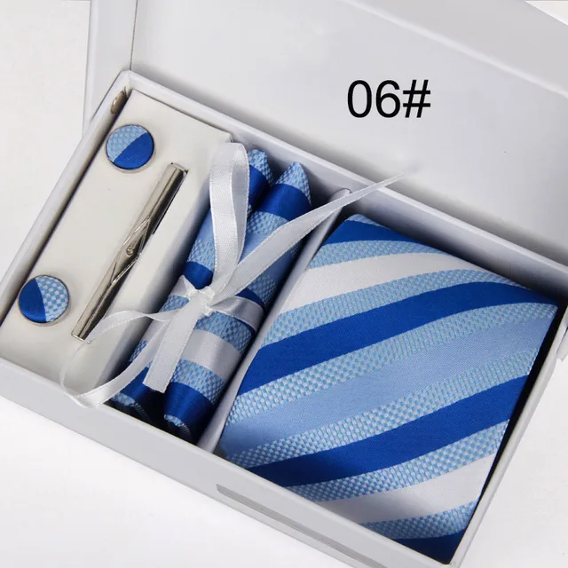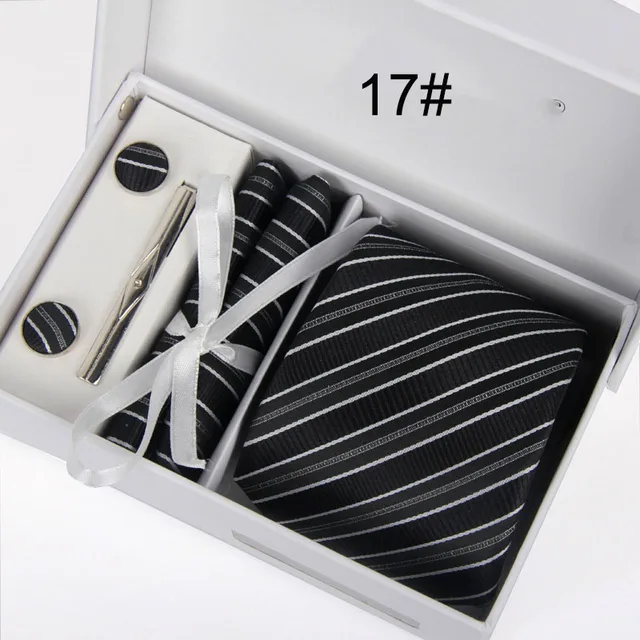 상품 내용 남성 클래식 액세서리 부드러운 정장 파티 저녁 넥타이 세트 친구 남편 선물 넥타이 일치 커프스 손수건 세트 색상: 17 색상 선택 크기: 145 센치메터 * 8 센치메터 특징:6 개/상자 선물 가지고 선물 상자