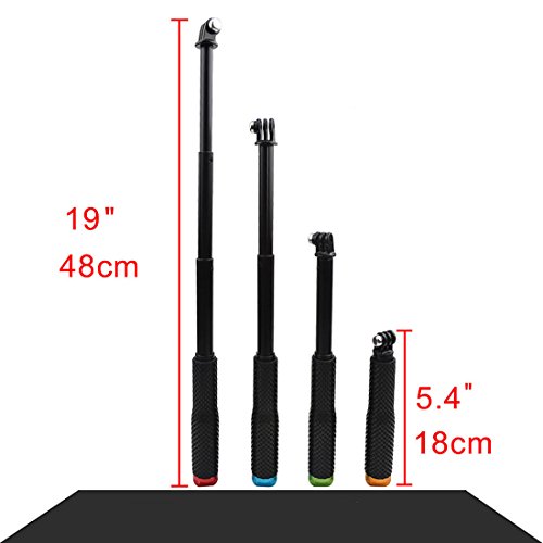 Gopro Selfie Stick , TFSeven Adjustable Aluminum Telescoping Monopod Handheld Extension Selfie Stick for Gopro Hero 4 3+ 3 2 SJ4000 SJ5000 Xiaomi Action Cameras (7-19 inch)