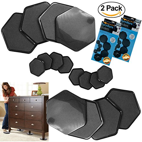 -. Feature : ★ CURVED BEVELED EDGES WITH SMOOTH BOTTOM FURNITURE GLIDERS With this 2 Pack set you will receive 16 furniture moving sliders 8 Large and 8 small. Hexagonal shape adapts to any size and shape of legs. Made from premium plastic and foam. Foam and plastic will not rip or break apart. Reusable Furniture Movers provides proper weight distribution on large furniture items and can be used on: tables, sofas, beds, dressers, recliners, heavy appliances and much more / ★ EASY ON ALL SURFACES NO DAMAGED FLOORS Help glide and slide the furniture resting on them. Works on Wood, Vinyl, Ceramic, & Carpeted Floors No adhesive is necessary to hold the furniture onto the slider discs. Perfect for sofas, desks, dressers, armoires, refrigerators, washers, dryers and more. Simply place a glider under each leg of the furniture and watch it move without putting in much effort / ★ SLIDE FURNITURE DO NOT HURT YOUR BACK LIFTING FURNITURE Ideal for use on all floors: carpet, tile, wood, and more. Smooth bottom protects from scratching all floors. Can be used on table's cedar chests chairs curio cabinet's desks and a variety of other heavy furniture items. No more backaches and hernias. Move just about any heavy object easily and hassle-free. Provides a secure grip on your furniture that can be left under furniture for easy moving and cleaning / ★ FURNITURE PADS HAVE THICK FOAM THAT MOLDS TO OBJECT PLACED ON IT Save yourself time energy and backaches. Designed to help you move your furniture effortlessly. How about simply moving your big living room sofa so that you can vacuum what's underneath. Any type of heavy furniture on any surface in your home both hard surfaces and carpet / ★ VERSATILE AND MAKES CLEANING EASY Works on wood, carpet, tile and linoleum floors. Offering superior quality and long-lasting performance for all of your furniture moving and floor protection needs WE GUARANTEE IT! We want you to be satisfied with our products, so you can buy with confidence! If you're looking to save time and simplify things in your daily routine click the "Add to Cart" button NOW! And enjoy the confidence of owning the #1 floor protector set available