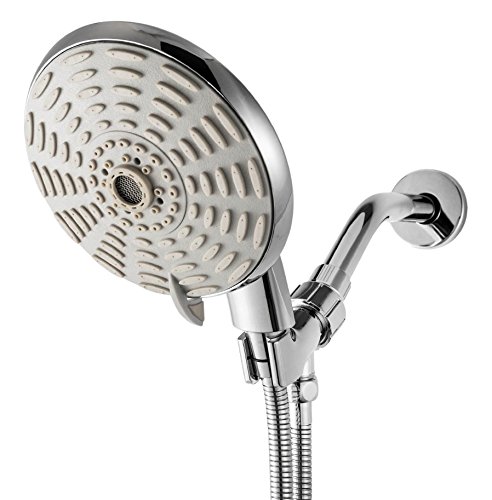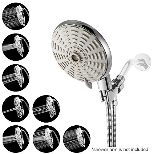 LORDEAR Luxury Large High Pressure 8 Setting Water Flexible Removable Rain Message Detachable Handheld Shower Head Set with Holder, 6" Shower Head with Hose, Chrome Finish