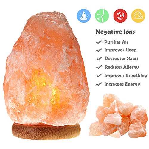 HEALTH BENEFITS - Heat from the bulb causes the salt to emit negative ions which are scientifically proved to purify air, improve breath and reduce allergy and asthma symptoms. These negative ions also combat electro-smog caused by the electronic devices.