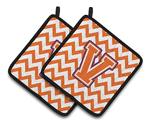 Caroline's Treasures Letter V Chevron Orange & Regalia Pair of Pot Holders CJ1062-VPTHD, 7.5HX7.5W, Multicolor