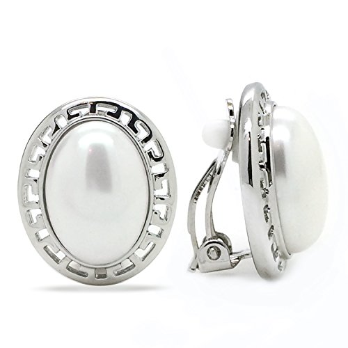 Made of rhodium plated base metal with polished finish, these clip earrings are accented with simulated pearl for a more luxury look. Clip on backings made these earrings easy to wear and remove. These fashion clip on earrings will make the perfect choice for your special someone for Valentine's gift, Christmas gift, Mothers day gift, Birthday gift, Anniversary Gift, or Bridal party gifts.Feature