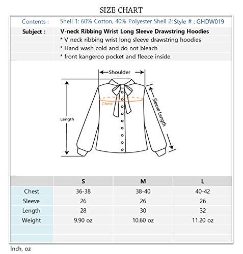 Feature : V neck ribbing wrist long sleeve drawstring hoodies / Hand wash cold and do not bleach / front kangeroo pocket and fleece inside / Please refer to our size chart for sizing information / NOTICE: Before order, please refer to our LEFT Size Chart Picture (Not the Amazon size chart)