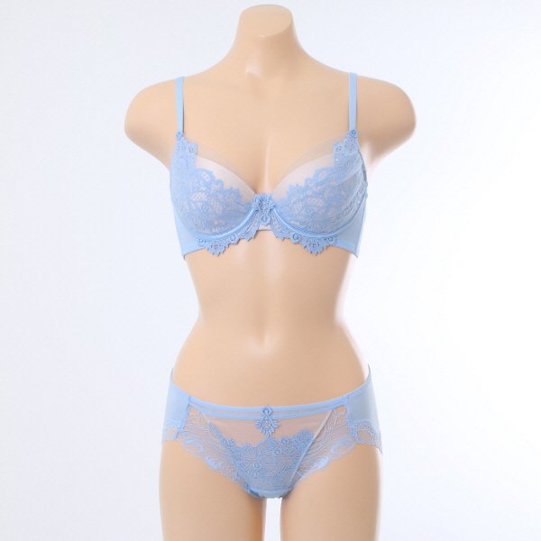 정교하고 가볍게 짜여진 "케미컬 레이스"를 사용하면서 그 위에 "투명 망사"로 덮어주어 은근히 비치는 베일장식 효과를 주면서도 겉옷에 두드러지지 않도록 커버해 주었습니다.
