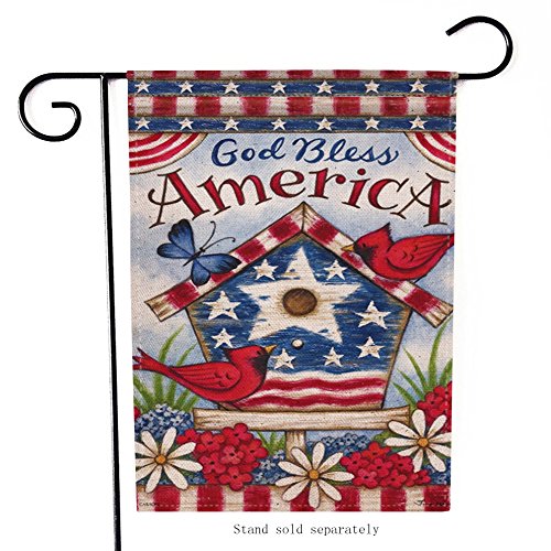 -. Title : Dyrenson Home Decorative Outdoor 4th of July Patriotic Cardinal Garden Flag Double Sided, God Bless America House Yard Flag, Red Bird Geraniums Decorations, USA Flower Seasonal Outdoor Flag 12 x 18