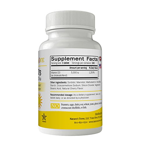 -. Title : Vitamin D3 5000IU by Nature's Trove - 240 EZ Chew Tablets Cherry Flavor