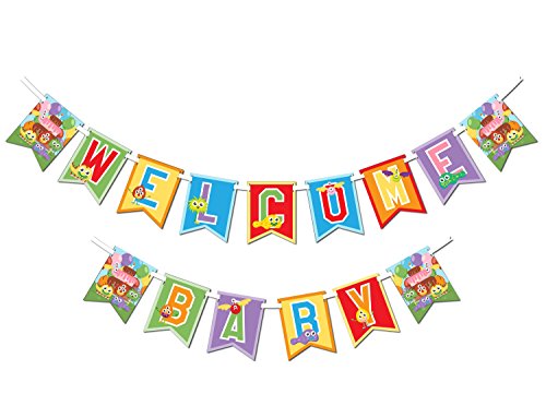 -. Feature : Multi-use banner for birthday parties or baby showers: simply face panels according to your celebration. / Front panels: "happy birthday" back panels: "welcome baby". / Includes 15 double sided panels, each 6x8". / 23 feet of ribbon included (plenty of ribbon for easy hanging). / Some assembly required: simply insert ribbon through the pre-punched holes.
