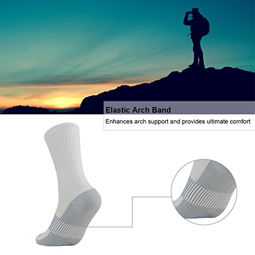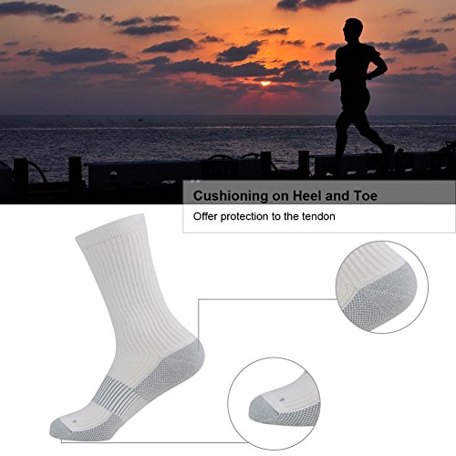 -. Feature : ANTI-BACTERIAL & ANTI-ODOR- The addition of copper ions in the yarn can produce a natural protected area, eliminating 99% of the bacteria and fungi. The blended copper ion fabric is very soft, smooth and has the capability of wrinkle resistance, moisture wicking , quick drying / PREMIUM COMFORT FIT- The cushioned sole gives FOOTPLUS copper athletic socks a soft feel, and keeps warm in fall and winter. The spandex arch support provides arch protection and prevents foot injury. The hand-lined seamless toe ensures protection against yarn chaffing and irritation caused by traditional toe seams. The heel tab prevents the socks from slipping down / FASTER RECOVERY- Enhanced blood circulation by improving venous return. Reduced muscle oscillation and vibration upon ground contact, providing stability to the muscle, resulting in a faster and easier recovery, improved performance / FOUR SEASONS & ALL SPORTS- FOOTPLUS COPPER SOCKS are not too thick or too thin, warm in winter and breathable in summer. Professionally customized for all sports, mountain climbing, football, hiking, running, tennis, marathon, hockey, soccer, basketball, golf, cycling, etc. Black and white, ankle and crew length, simple style socks fit any everyday dressing for adults and teenagers / SIZE- Two sizes: Medium: Men 5-9 US; Women 6-10 US. Large: Men 9-12 US; Women 10-13 US