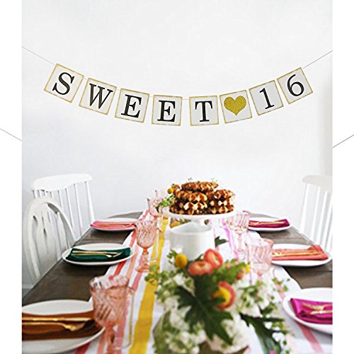 -. Title : Sweet 16 Birthday Banner Gold Glitter – Sweet Sixteen Decorations, Party Favors, Supplies, Gifts, Themes and Ideas - Vintage Happy Birthday Decorations