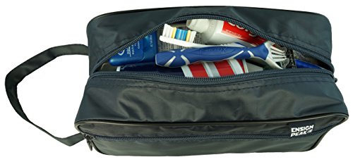 -. Binding : Apparel -. Brand : Ensign Peak -. Department : unisex-adult -. Feature : 70 Denier nylon fabric is water and stain repellent / One large, easily accessed central compartment with full top zipper and inside pocket / Large front zipper pocket and convenient carrying handle / Ideal size to contain the average persons grooming arsenal / Dimensions: 10.5" W x 6.25" H x 4" D -. IsAutographed : 0 -. IsMemorabilia : 0 -. Label : Ensign Peak -. Manufacturer : Ensign Peak -. ProductGroup : Apparel -. ProductTypeName : BAG -. Publisher : Ensign Peak -. Studio : Ensign Peak -. Title : Ensign Peak Toiletry Travel / Shaving Bag
