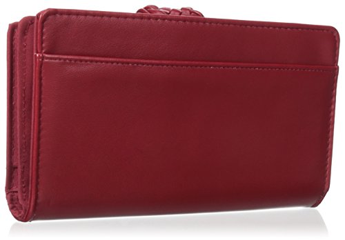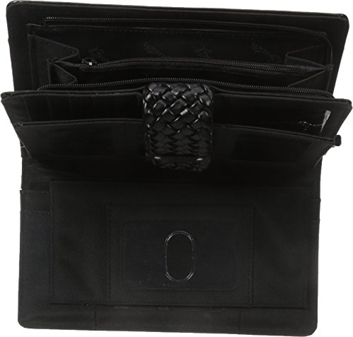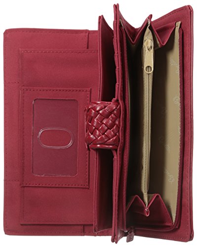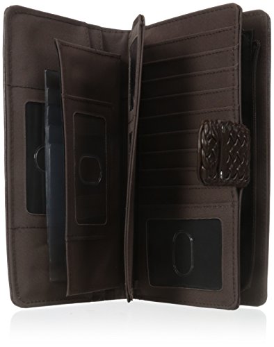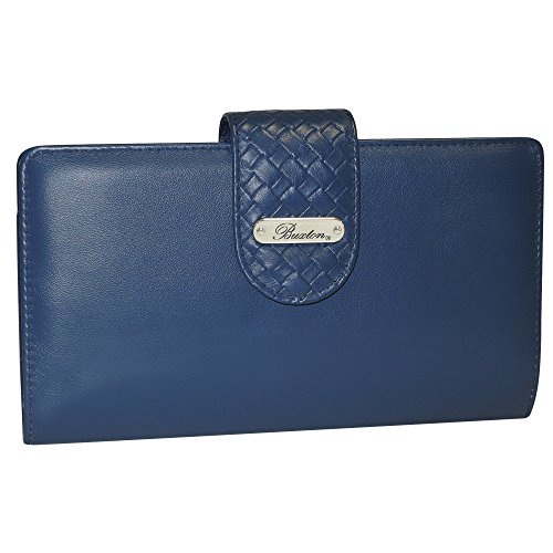Studio : Buxton Publisher : Buxton Binding : Apparel Product Description This wallet by Buxton has a dual snap closure that allows you to adjust the closure to fit the size of the wallet. Inside this front section is a removable checkbook holder, pen holder, 2 identification slots, pull out album with 5 translucent slots for photos or ID, 3 attached slots for additional photos or ID, 2 horizontal pockets and 9 credit card slots. The back zipper section has a fan opening to reveal two large pockets and a center zipper pocket. On the back is an additional open pocket for added storage. Measures 8" x 4.5" x 1.5" 0