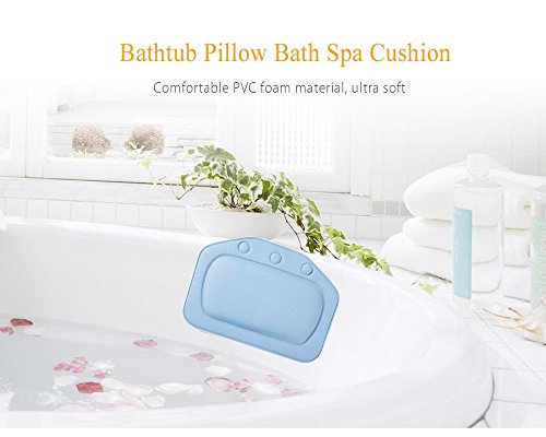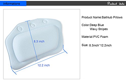 Bath Pillow ,Bomxy PVC Foam Soft Bathroom Spa Washable and Waterproof Pillows With Suction Cups Head Neck Rest Pillows (Deep-blue)