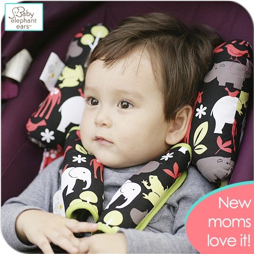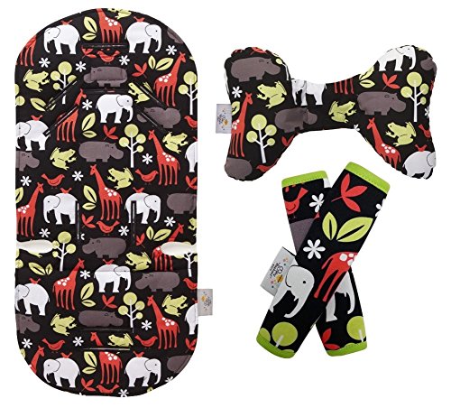 Baby Elephant Ears 3 Piece Stroller Set ~ Seat Liner, Support Pillow & Strap Covers (Zoology Red)