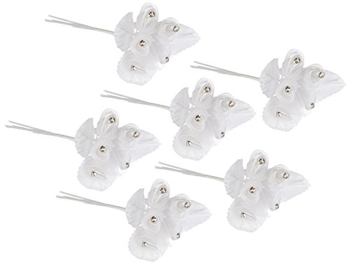 Darice V35980-01B Satin Sheer Flowers with Centered Rhinestone Accent and Matching Leaves, White