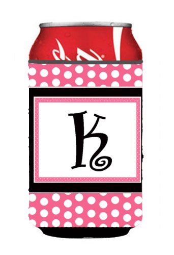 Letter K Initial Monogram - Pink Black Polka Dots Can or Bottle Beverage Insulator Hugger