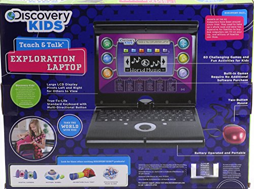 -. Feature : 60 discovery activities / Built in games / Large LCD display - pivots right and left, up and down / Standard keyboard and 2-button mouse / Battery operated and portable