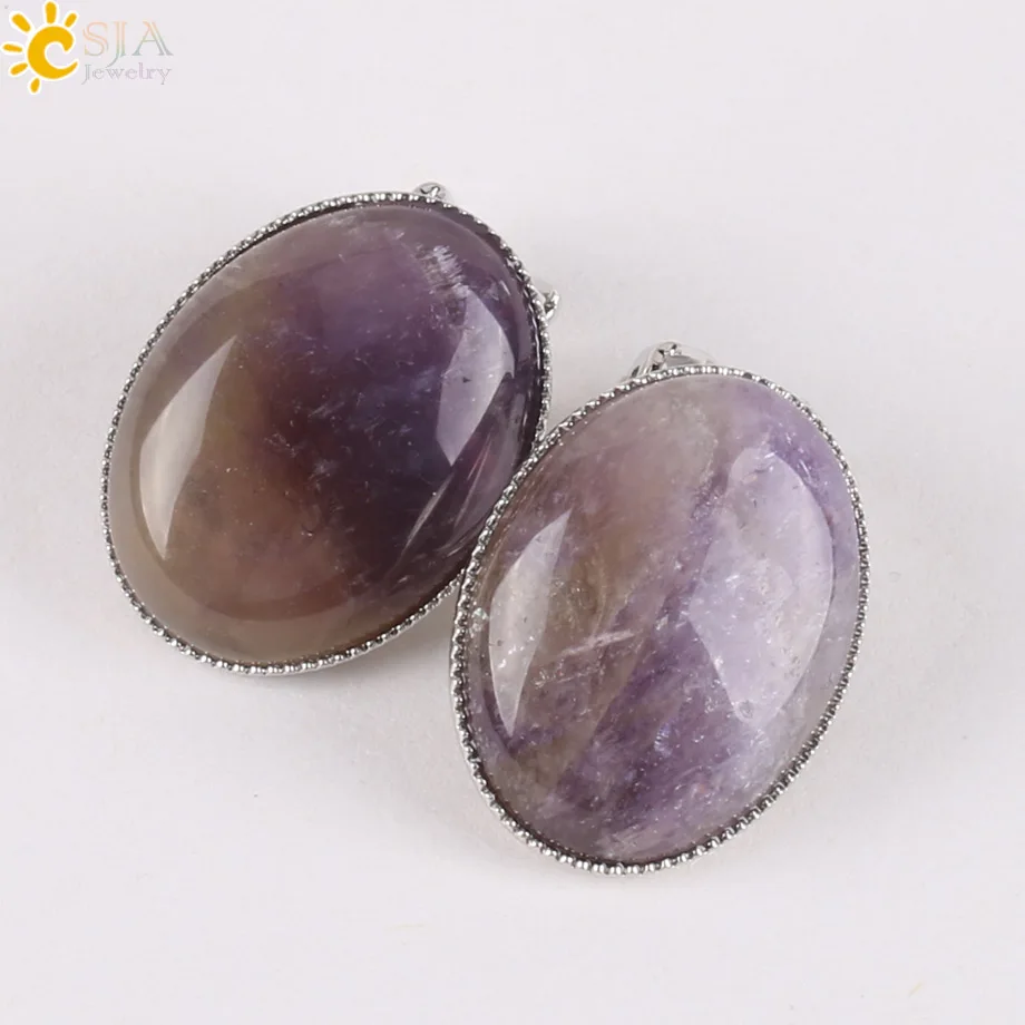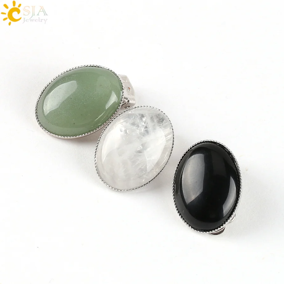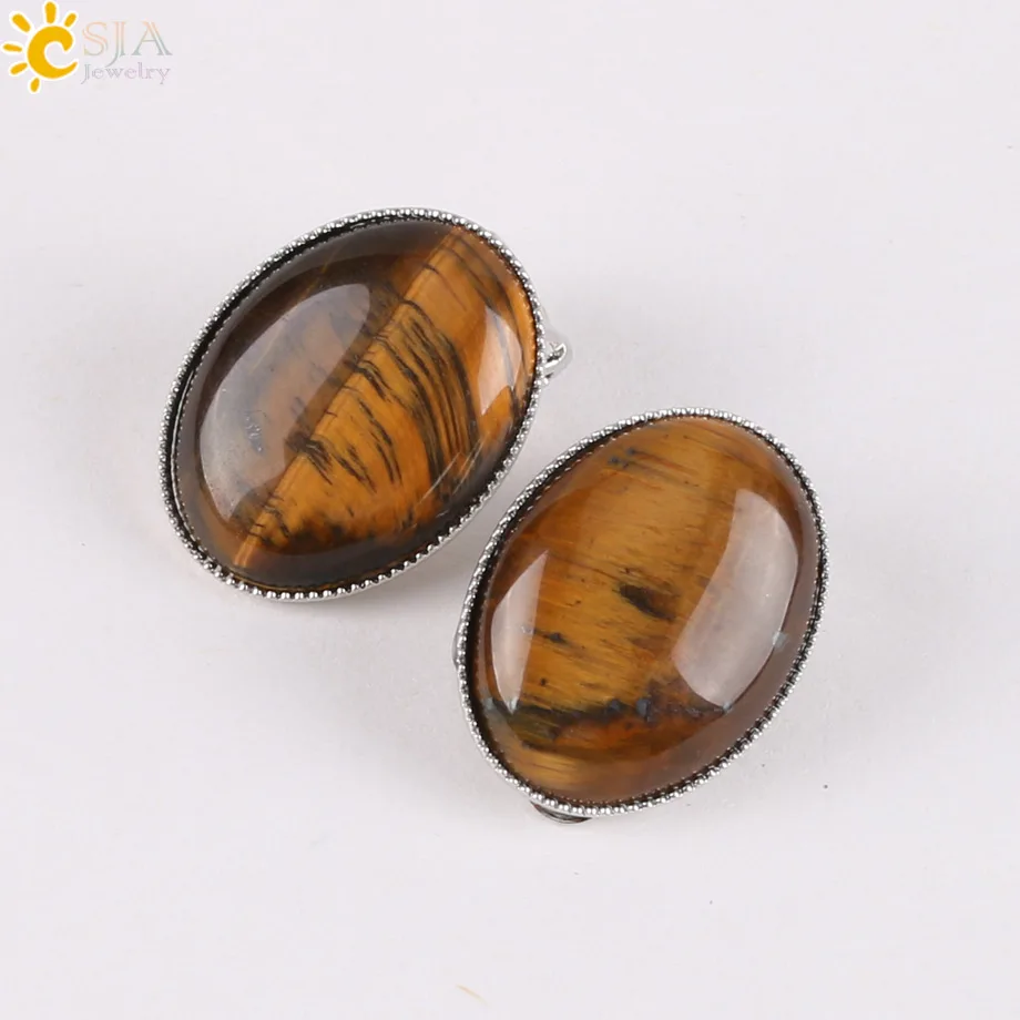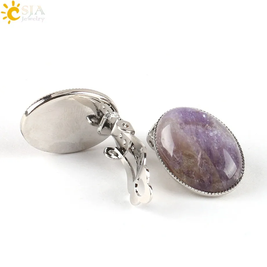 Earrings Feature:Clip Earring Design + Natural Gem Stone