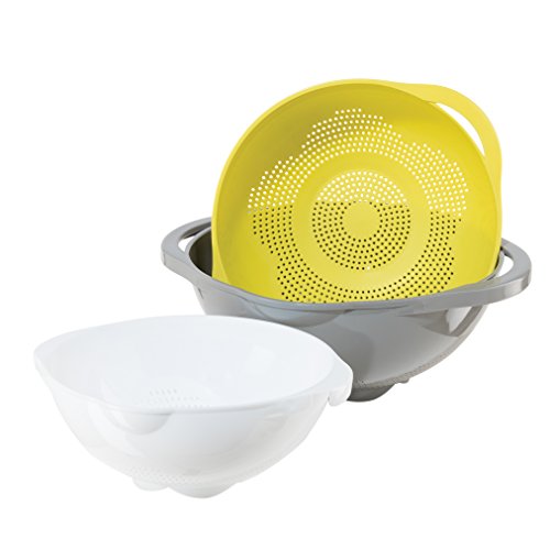 - Save space with this nest & store set of 3 colanders