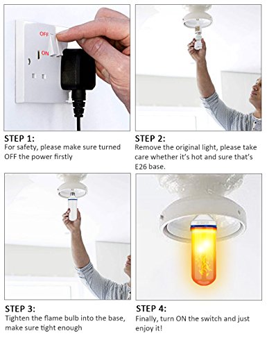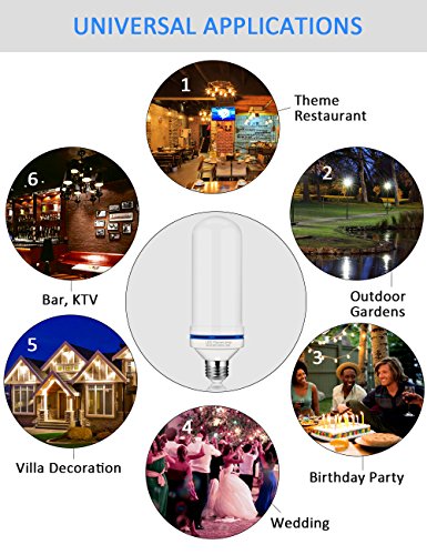 - 【UNIVERSAL BASE AND WIDE APPLICATION】LED flame lamps' base is E26 that is a standard light fixture in US, easy to install and apply. It brings warmth, enthusiasm and passion atmosphere, can be used at Church, castle, monastery, bedroom, living room, bar, hotel, night clubs, outdoor gardens, villas, wedding decorations, party etc.
