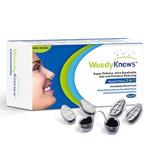 What's better about 3 in 1 nasal filters? - Offers More options to determine which type meets your needs - Ultra Breathable metal woven filter blocks 90% of pollen/ pet hair/ dander, the most breathable nasal filters of WoodyKnows - Super Defense white electrostatic filter attracts 97% of pollen/ dust/ dander/ mold, 90% of germs / PM2.5 particles, more breathable - Gas and Pollutant Reducing activated carbon filter attracts 81% vehicle exhaust/ second-hand smoke/ TVOC, but can NOT remove all the smells, good breathability - Please review the product images for more differences among these nasal filters Select Your Size: - Please refer to the images above for guidance on how to differentiate Round and Slotted Nostrils - Size chart is also provided, but please kindly notice the real size of your nasal passages may differ from that of your nostrils Size Details (L*W*H mm): - I-R: XSmall Round(12*10*6) - II-R: Small Round(13*11*6) - III-R: Medium Round(14*12*6) - IV-R: Large Round(15*14*6) - I-S: XSmall Slotted(15*8*6) - II-S: Small Slotted(17*9*6) - III-S: Medium Slotted(19*10*6) - IV-S: Large Slotted(21*13*6) Packaging Contents: - 3 frames and 6 pairs of replacement filters. 3 pairs of replacement filters have been already installed More Tips from WoodyKnows: -Washing/cleaning nostrils before putting on is highly recommended, or the snot will affect the filter efficiency - Please refer to the size images and choose carefully - Please search: B00ZS0W078 for metal woven replacement filters B00DKX0Z4A for white electrostatic replacement filters B017EXC2LK for activated carbon replacement filters Caution: - Do NOT use when nasal skin is irritated or if you are prone to frequent nosebleeds - Not for use if under the age of 5 Pure Air Wherever You Go! 0 |