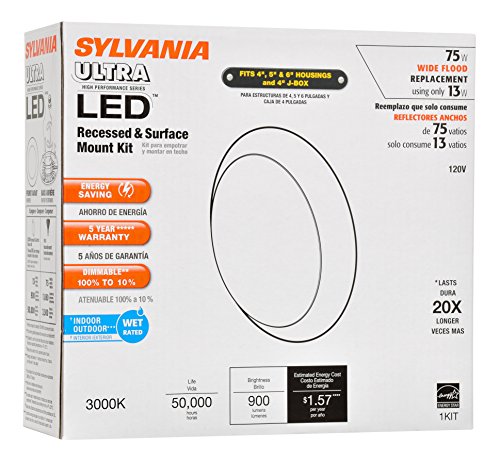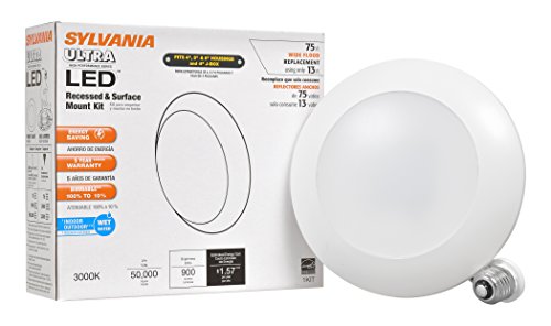 Sylvania 73676 Bright White 3000K Ultra Light Disk LED 75W Recessed and Surface Mount Downlight Kit with Medium Base
