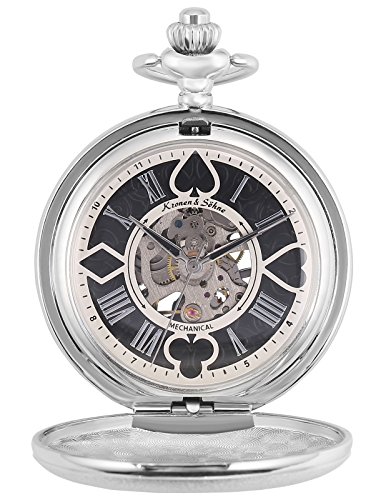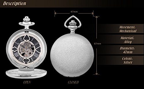 Ks [K 에스]KS 회중 시계 태엽 기계식 포커 문자판 스켈리턴 케이스 로마 숫자 실버 KSP082