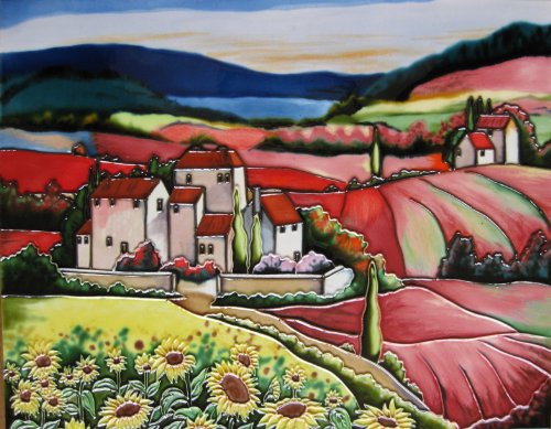 Continental Art Center HD 049 House with Sunflowers by Ken Schilling Art Tile, 11 by 14-Inch