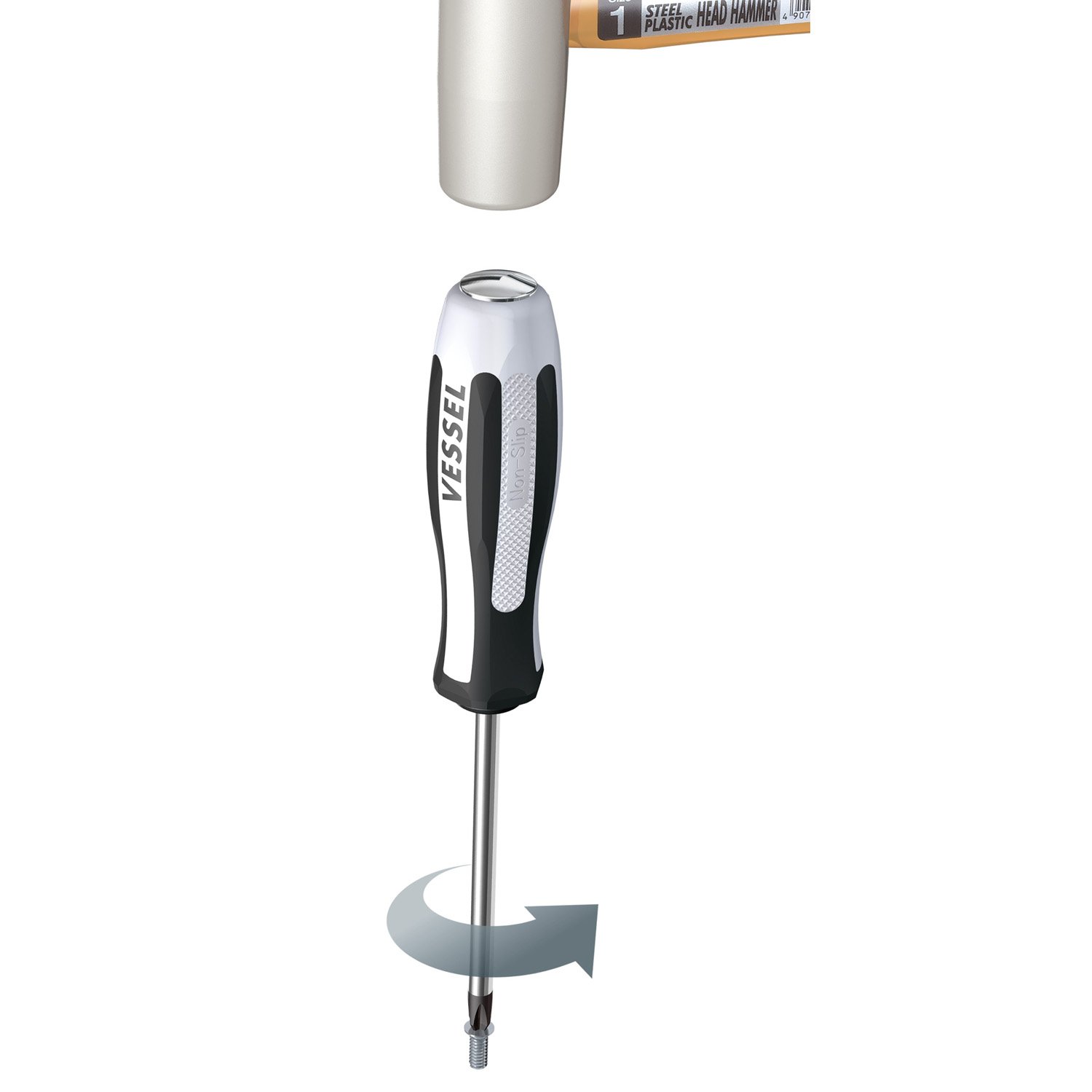 ● When you hit with a hammer, the cutting edge instantaneously rotates twelve degrees ● You can loosen screws with crushed crucibles, rusted screws etc. ● Ideal non-slip processing for oil work on the grip ●