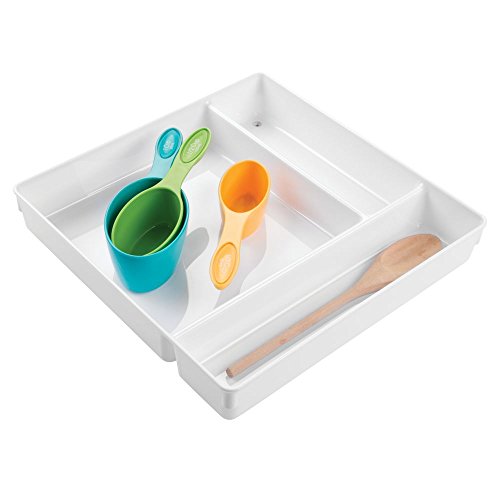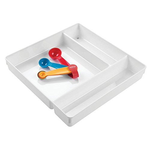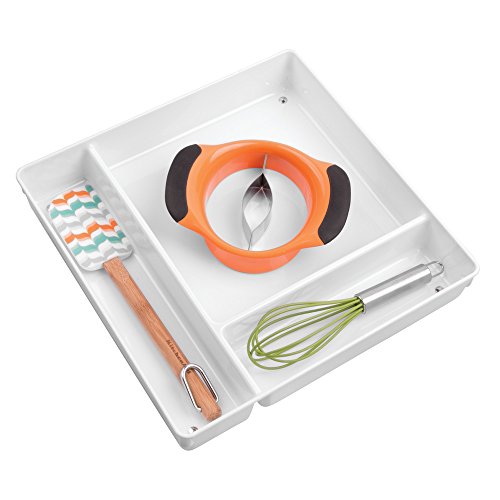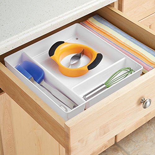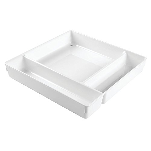 InterDesign Linus Kitchen Drawer Organizer for Silverware, Spatulas, Gadgets - 12" x 12" x 2" - White