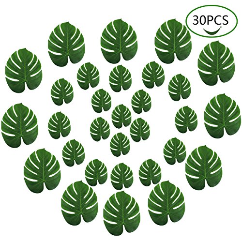 Juday 30 Pcs Artificial Tropical Palm Leaves for Party Jungle Beach Theme Table Decoration (M)