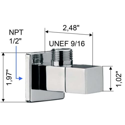 Studio : Remer by Nameek's Publisher : Remer by Nameek's Product Description Remer 128S Features: -Material: Brass.-Square wall mounted.-Contemporary design.-For bathroom sink.-0.5 NPT x 0.56 UNEF. Color/Finish: -Finish: Polished Chrome. Dimensions: -Dimensions: 1.93" H x 1.93" W x 3.57" D. 0