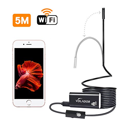 VOLADOR 16.5ft WiFi Endoscope, 2.0MP HD Wireless Inspection Camera, 8mm Semi-Rigid Borescope Flexible Waterproof Snake Camera for iOS and Android Smartphones, Tablets, Laptop, Windows