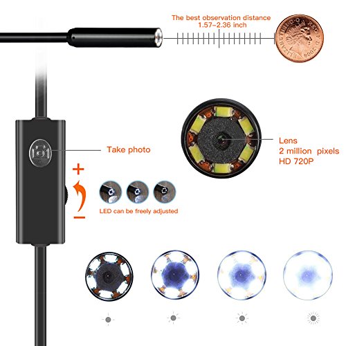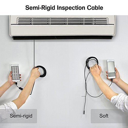 【Multiple Applications】 - Comes with 8mm diameter and waterproof camera, 6 tiny white LED lights(adjustable brightness). This wifi inspection camera is ideal for peeking inside walls ceilings pipes drain holes, or inspecting car motorcycle cylinder bores and intake and exhaust ports, HVAC inspection, vent pipe, machine equipment, engine, automotive, boat, aircraft inspection.