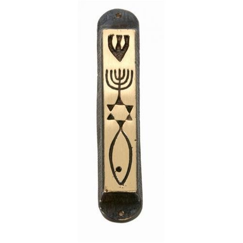 Brass Messianic Seal Mezuzah case with Messianc Seal - Heavy and Large 10cm or 4 inches (Smooth Design - Small for 3" Klaf)