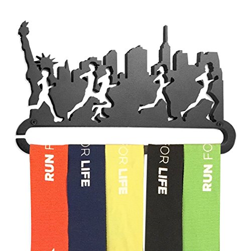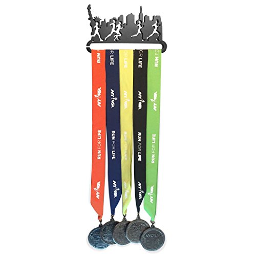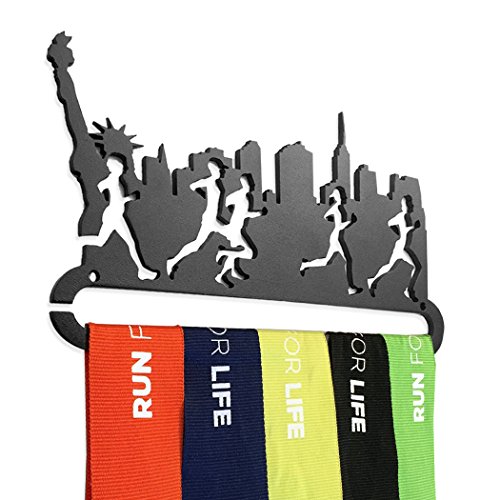 THE ORIGINAL RUNNER'S RACE MEDAL DISPLAY beautifully displays your hard earned collection of medals from marathons, half-marathons, 5Ks, triathlons, road races, and other athletic events.Our exclusive design features the NYC skyline and will inspire you to put on your running sneakers and go fo a long run!