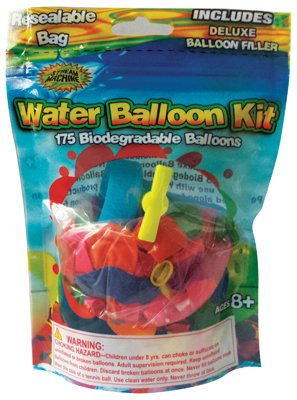 Product DescriptionWater Balloon Refill Kit, Includes 1 Deluxe Filler Nozzle, 175 Biodegradable Latex Balloons.0