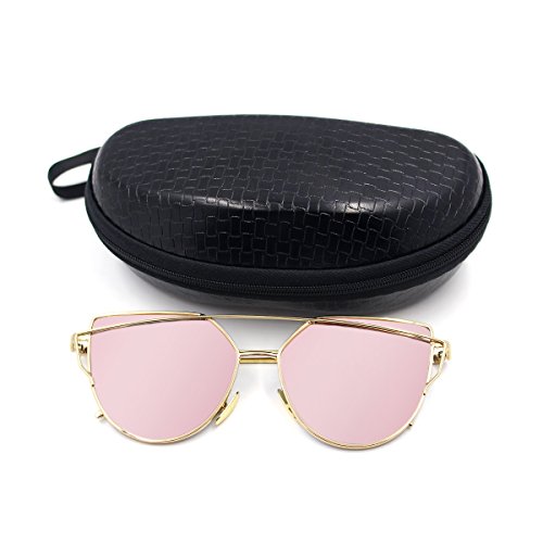 Hippih Cat Eye Sunglasses Metal Frame Mirror Sunglasses For Women
