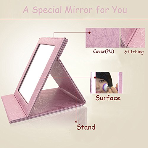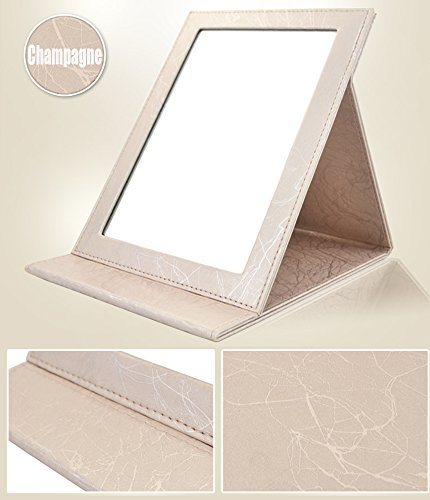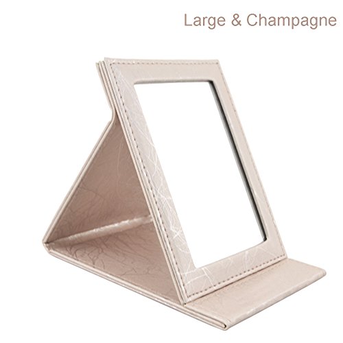 ToiM Portable Folding Vanity Mirror with Stand, Collapsible Mirror Make-up Mirror Dresser Foldable Mirror Make-up Tools and Accessories (Large, Champagne)