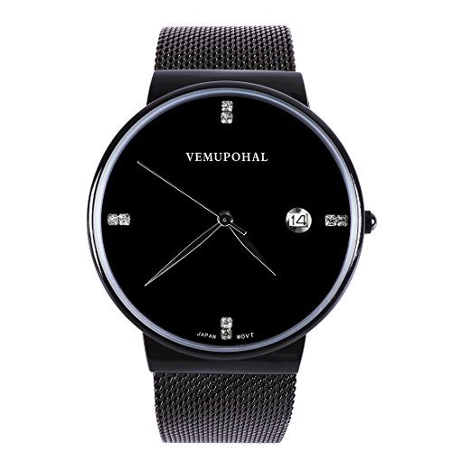 -. Title : 超薄型腕時計 メンズ 軽い ビズネス 日常 ステンレス メッシュ バンド クオーツ  ドイツ強化ガラス 真空めっき 日付 30M防水 日本製電池 ブラック ブルー ゴールド ホワイト