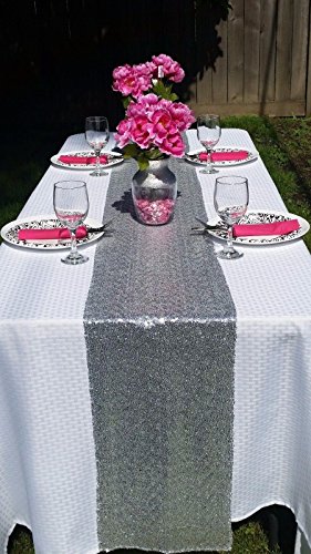 Product DescriptionQuantity: 1 table runner Material: Silver sequins sewed on a mesh fabric Length : Approximately 12" x 108" Color: Silver.0