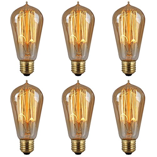 Edison Bulbs, 60w Filament Long Life Vintage Antique Style Incandescent Clear Glass Light Squirrel Cage Design E26 E27 Medium Base Lamp (6 Pack) for Chandeliers Wall Sconces Pendant Lighting
