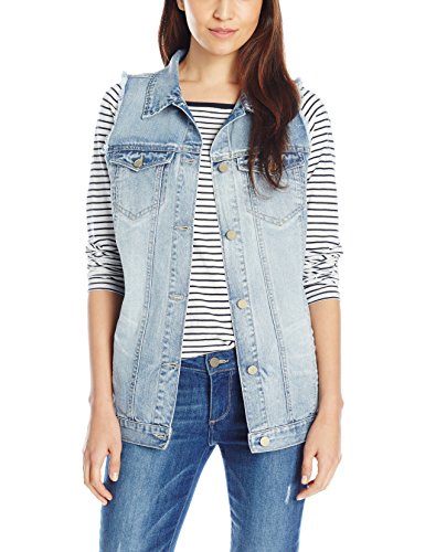 Democracy Women's Denim Vest with Two Pockets and Button Down, Light Blue, Medium