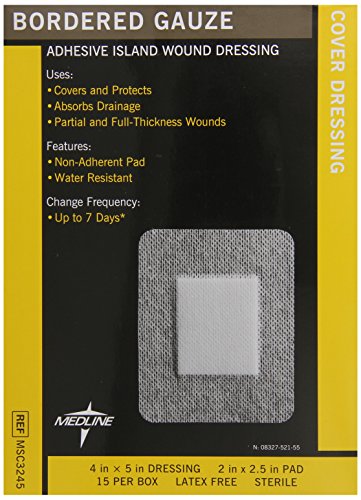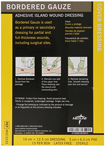 -. Title : Medline Gauze Border Pad Sterile, 4 Inch x 5 Inch 2 Inch x 2.5 Inch, 15 Count