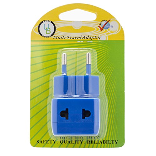 Yubi Power 2 in 1 Universal Travel Adapter with 2 Universal Outlets - Built in Surge Protector - Blue 2 Pack - Type C for France, Germany, Hungary, Portugal, Russia, Spain, Sweden, Egypt, Turkey, more