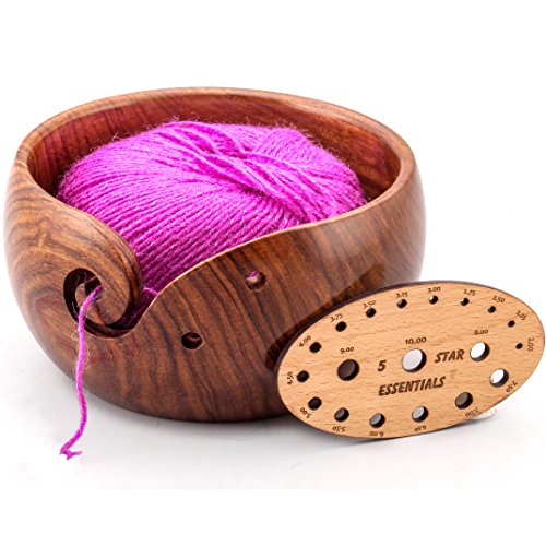Yarn Bowl | X- Large 8x4 Handmade Yarn Bowls for knitting and crochet (3 sizes, Rosewood) | Gifts for Women | Portable Wooden Yarn Storage w/ FREE bag and knitting gauge